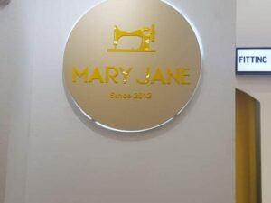 Biển quảng cáo mặt chữ mica chân inox cửa hàng thời trang Mary Jane